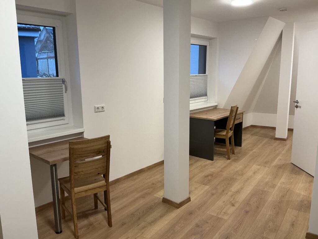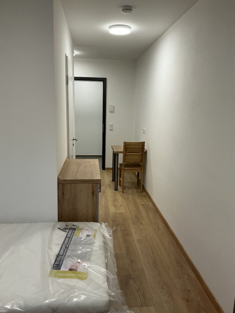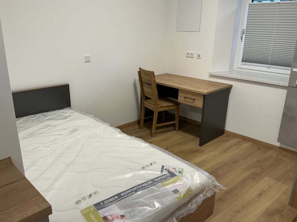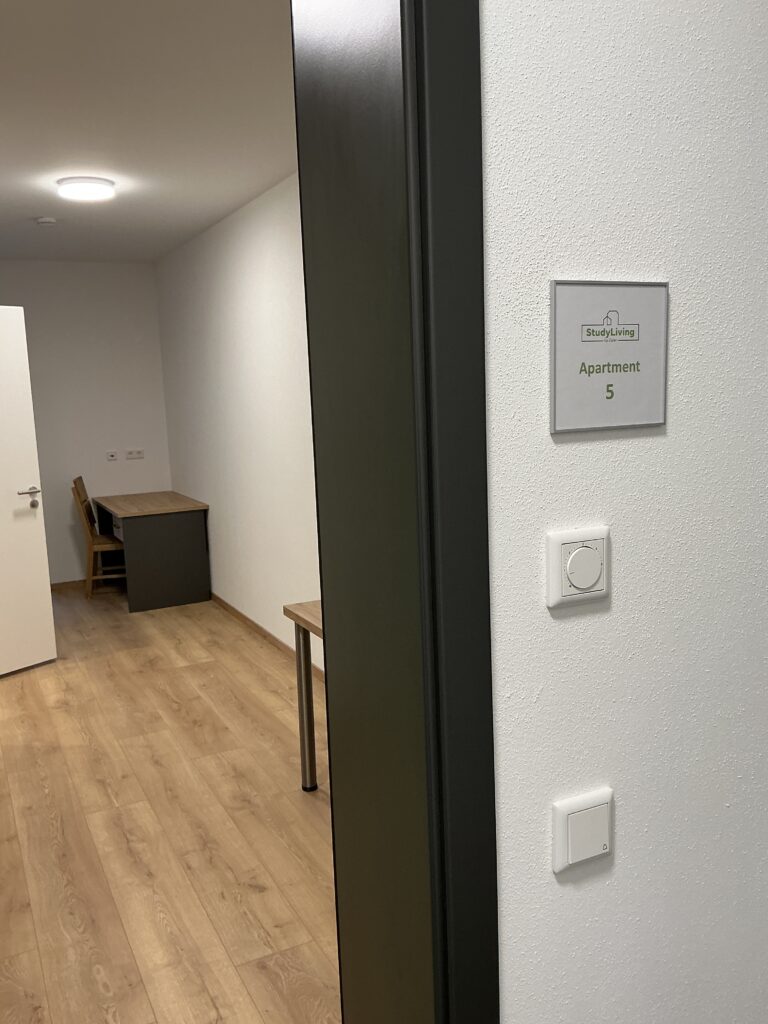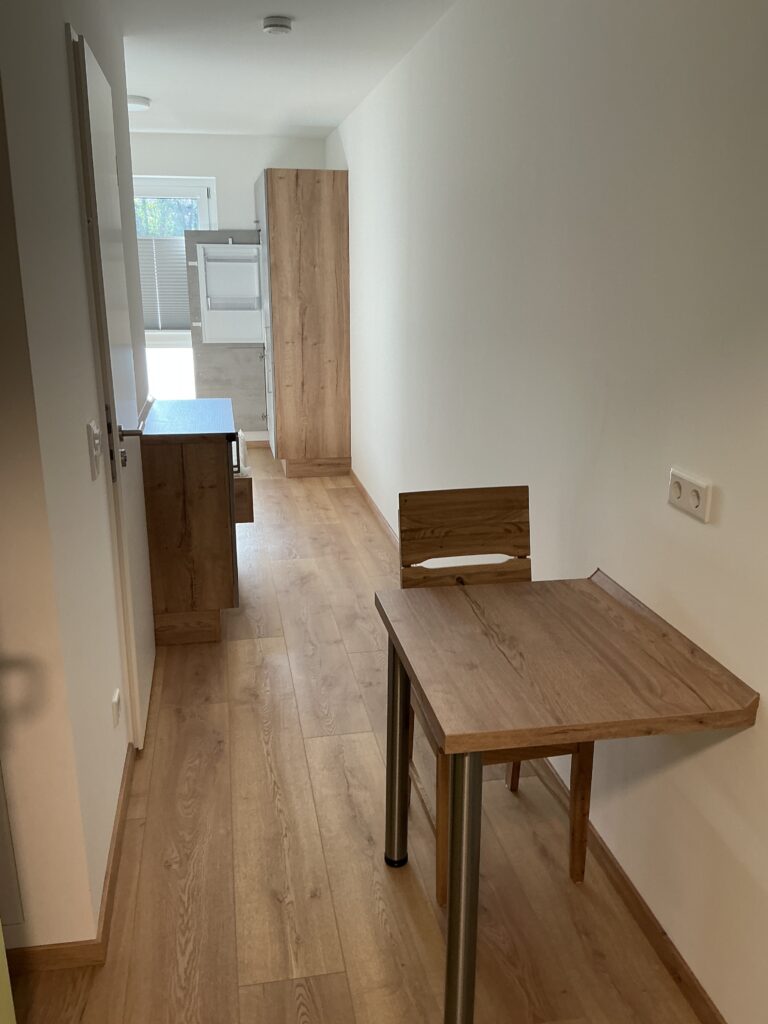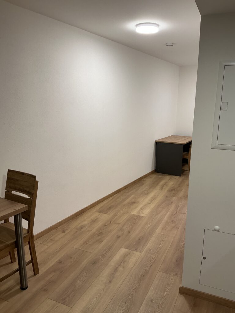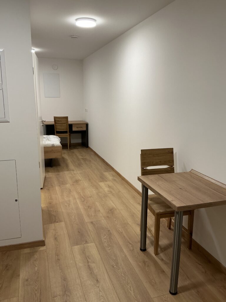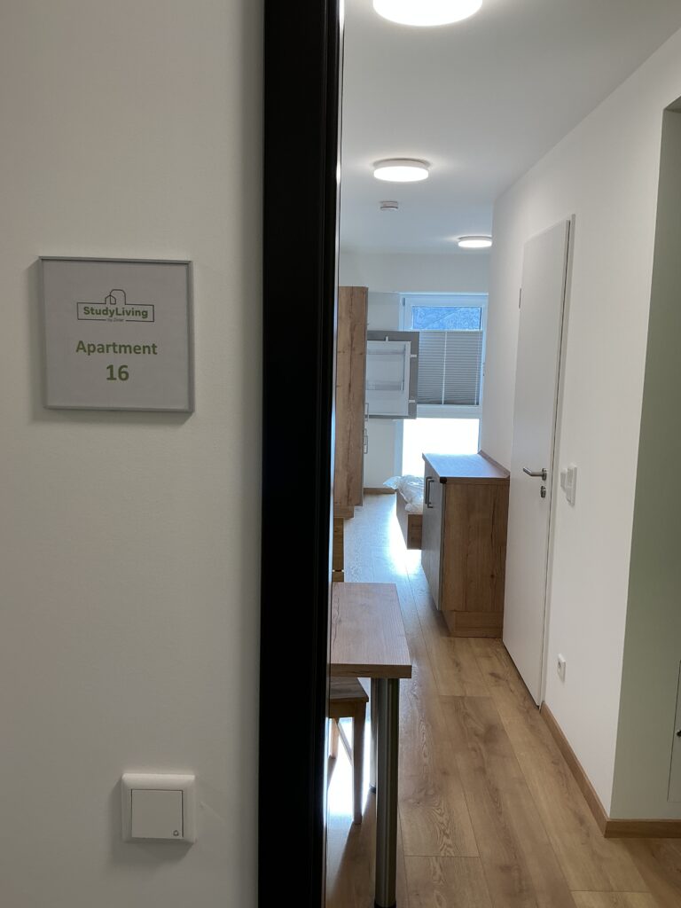 Das Erdgeschoss erreicht man direkt von der Straße „Auf der Schanze“ – der Haupteingang ist aber im Innenhof im 3. Untergeschoss. Wenn du mal raus aus deinem Apartment willst, wartet im Haus ein gemütlicher Gemeinschaftsraum auf dich. Hier kannst du Leute kennenlernen, gemeinsam lernen oder einfach den Feierabend drinnen oder im angrenzenden Garten genießen.