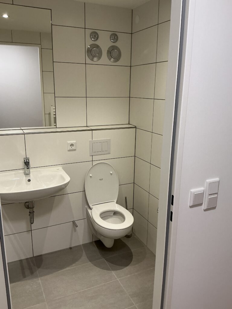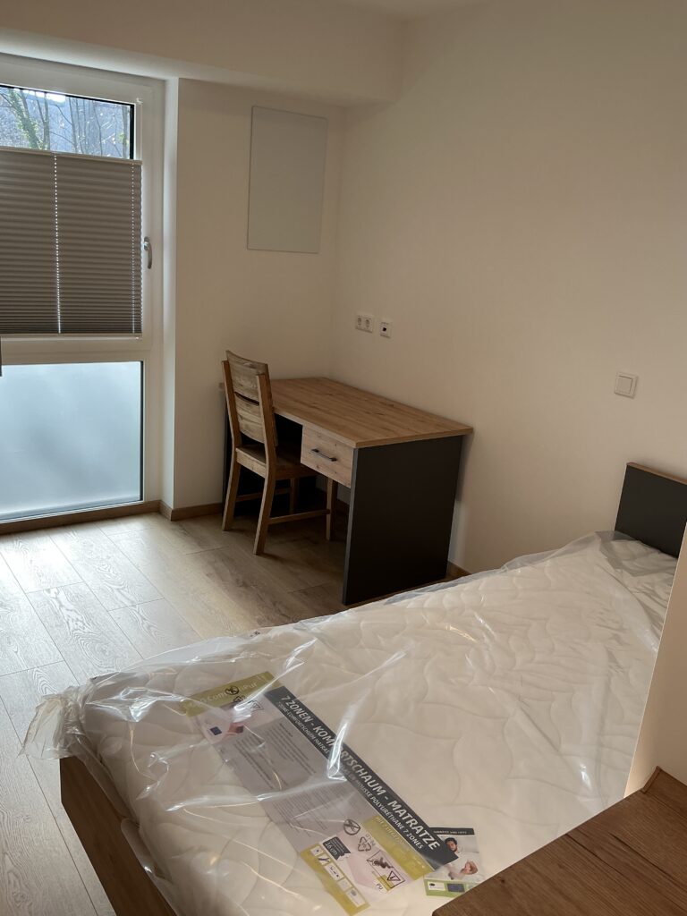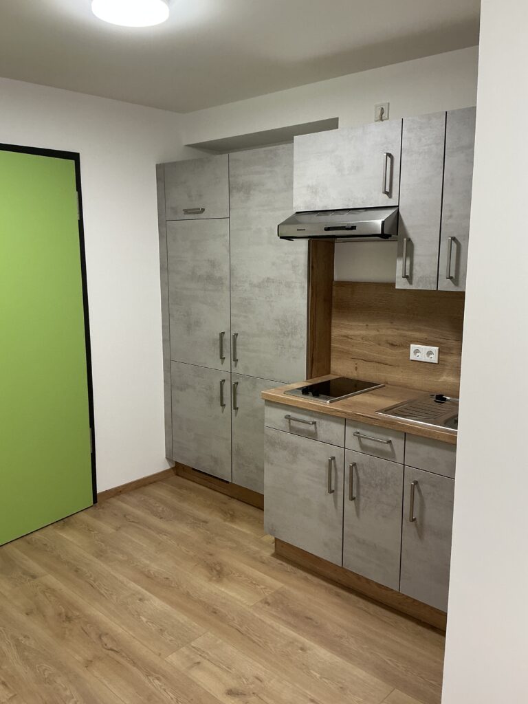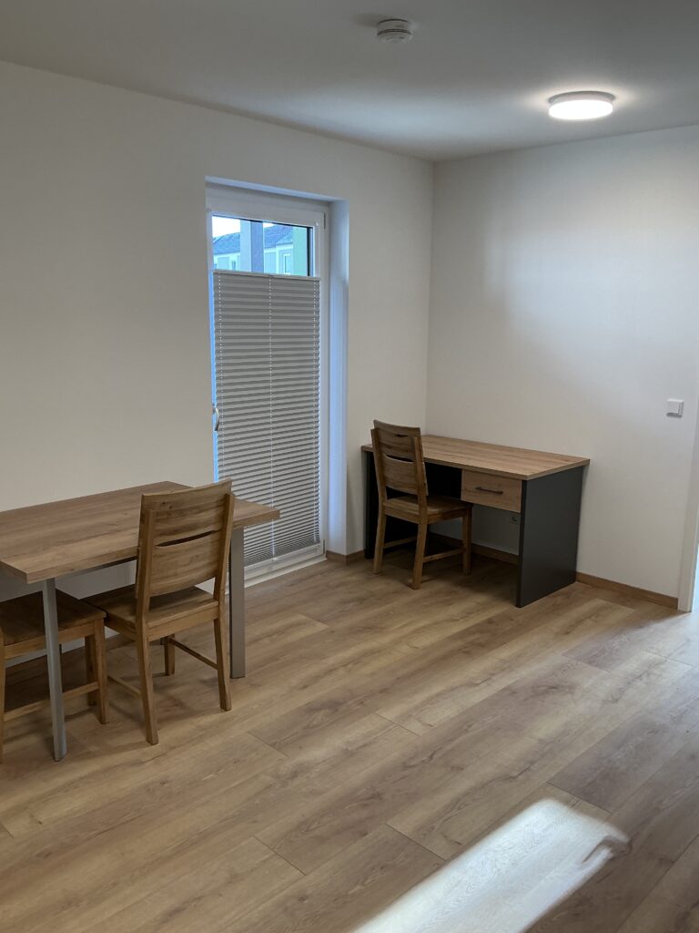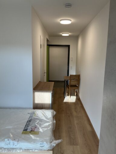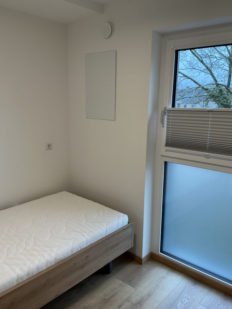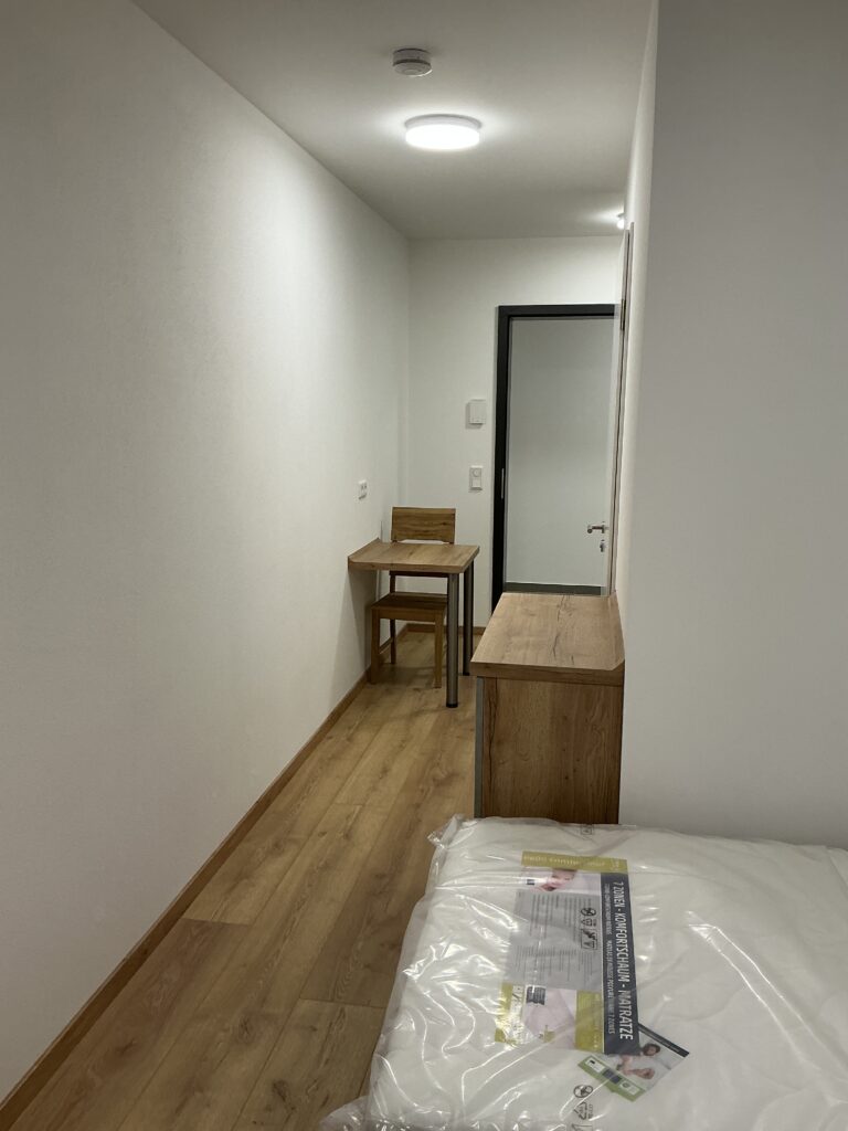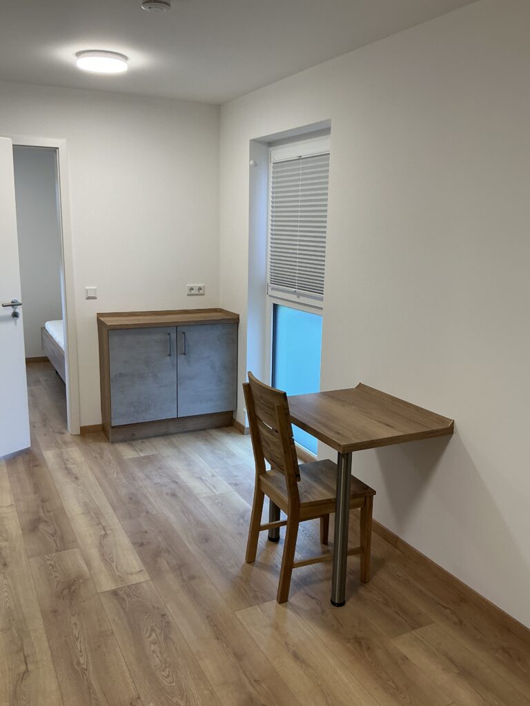 Das Erdgeschoss erreicht man direkt von der Straße „Auf der Schanze“ – der Haupteingang ist aber im Innenhof im 3. Untergeschoss. Wenn du mal raus aus deinem Apartment willst, wartet im Haus ein gemütlicher Gemeinschaftsraum auf dich. Hier kannst du Leute kennenlernen, gemeinsam lernen oder einfach den Feierabend drinnen oder im angrenzenden Garten genießen.