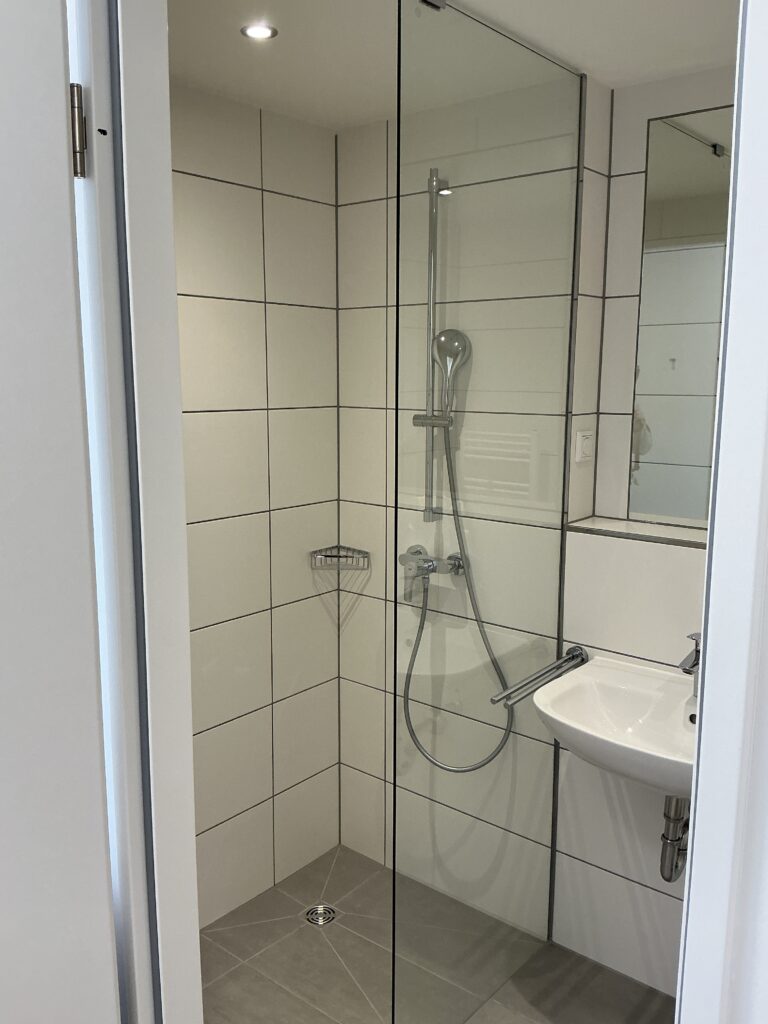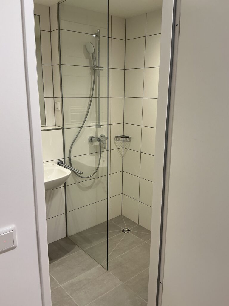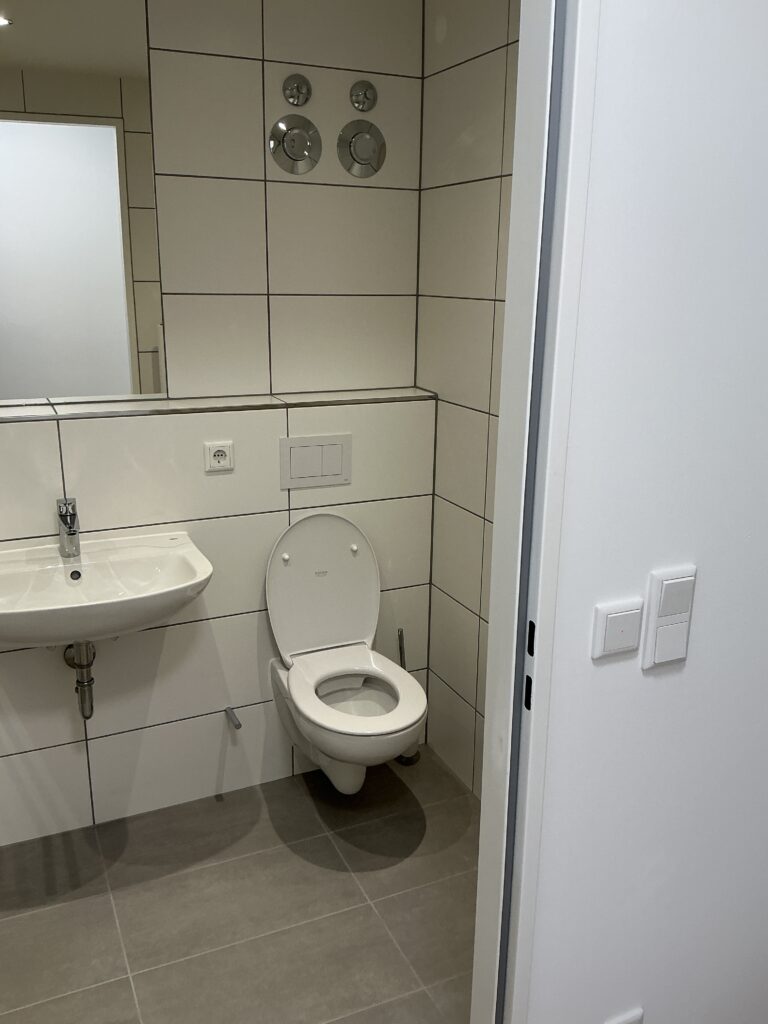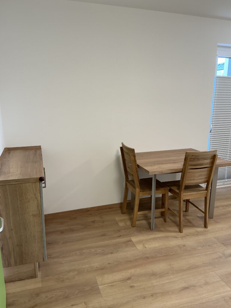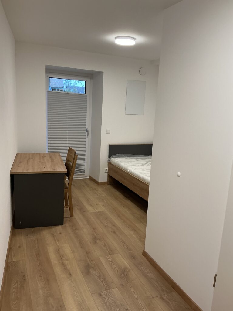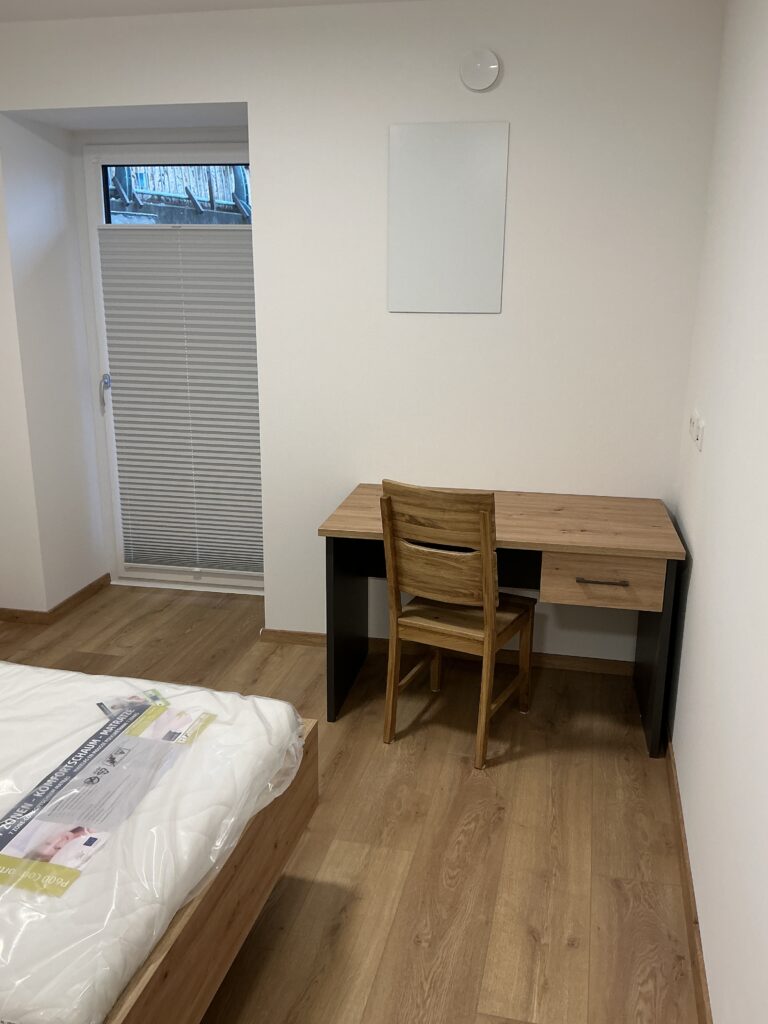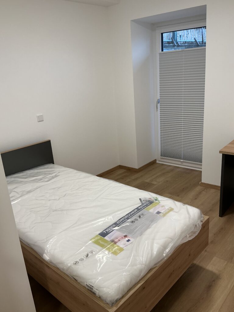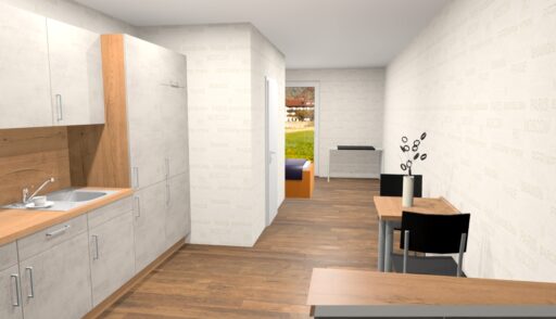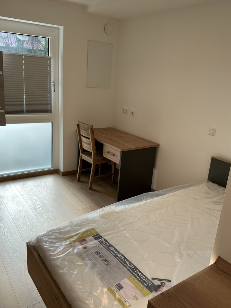 Das Erdgeschoss erreicht man direkt von der Straße „Auf der Schanze“ – der Haupteingang ist aber im Innenhof im 3. Untergeschoss. Wenn du mal raus aus deinem Apartment willst, wartet im Haus ein gemütlicher Gemeinschaftsraum auf dich. Hier kannst du Leute kennenlernen, gemeinsam lernen oder einfach den Feierabend drinnen oder im angrenzenden Garten genießen.