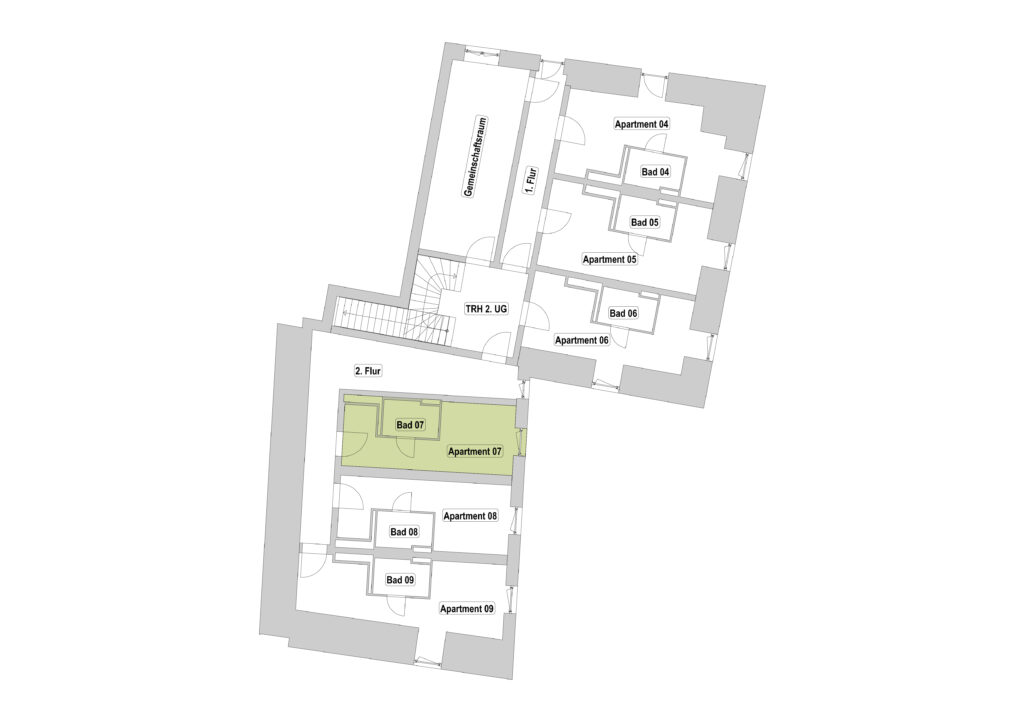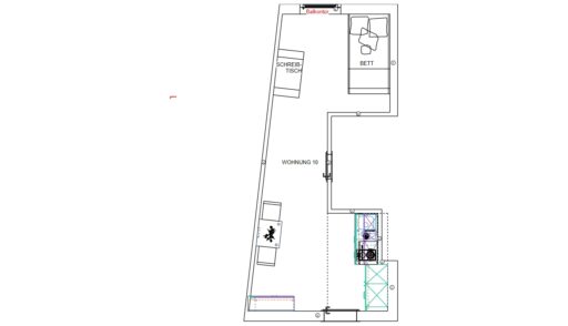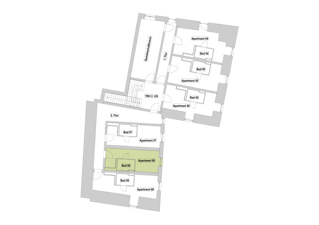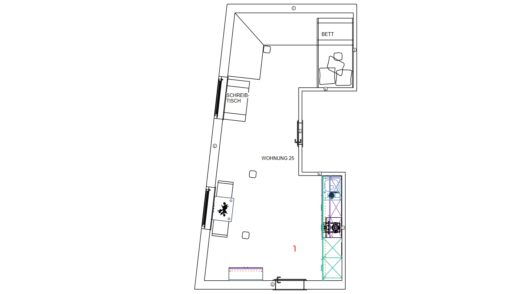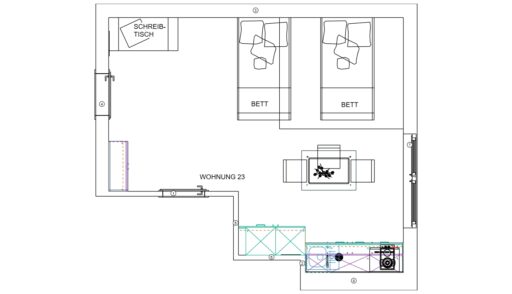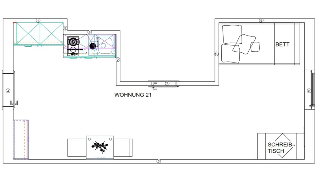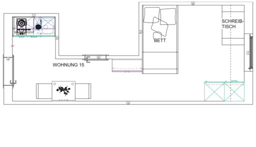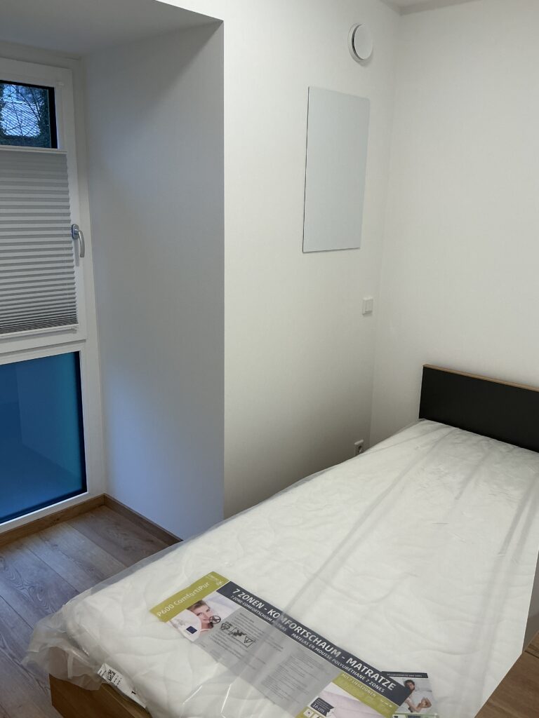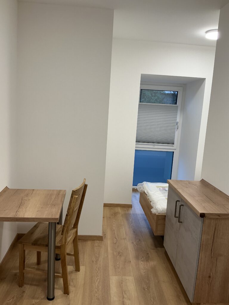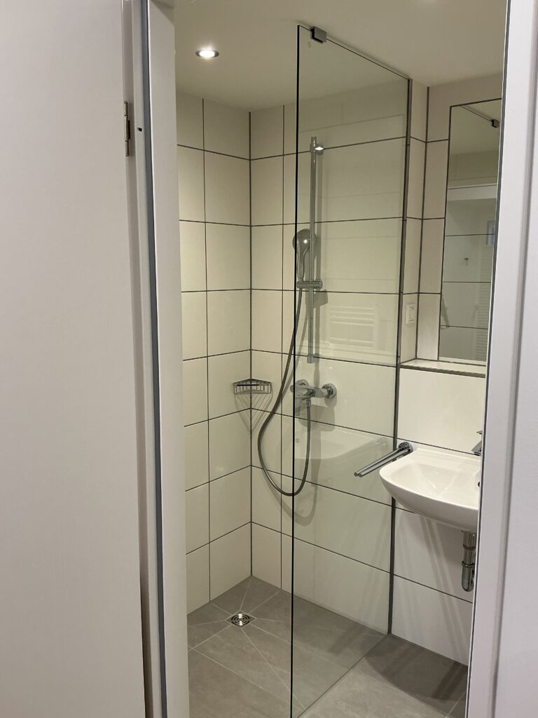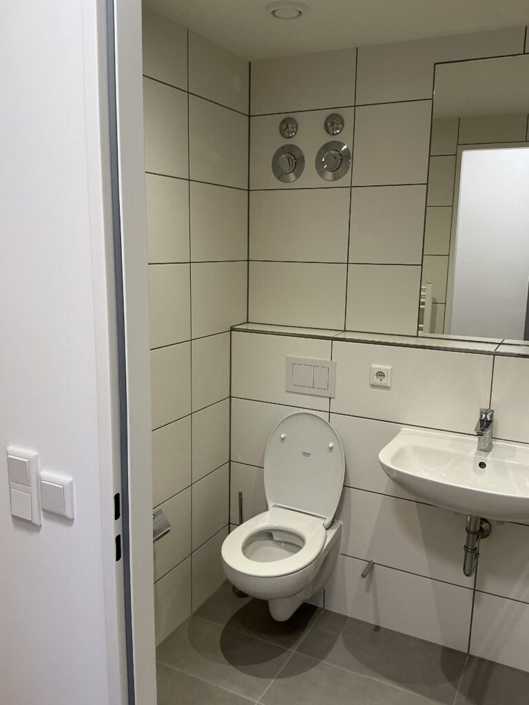 Das Erdgeschoss erreicht man direkt von der Straße „Auf der Schanze“ – der Haupteingang ist aber im Innenhof im 3. Untergeschoss. Wenn du mal raus aus deinem Apartment willst, wartet im Haus ein gemütlicher Gemeinschaftsraum auf dich. Hier kannst du Leute kennenlernen, gemeinsam lernen oder einfach den Feierabend drinnen oder im angrenzenden Garten genießen.