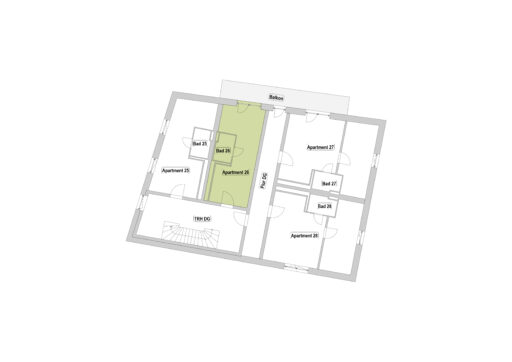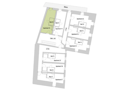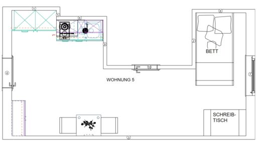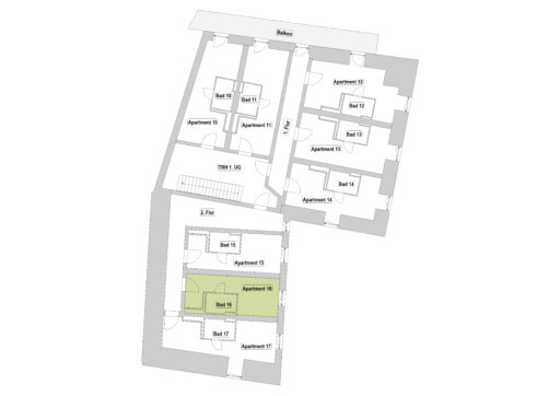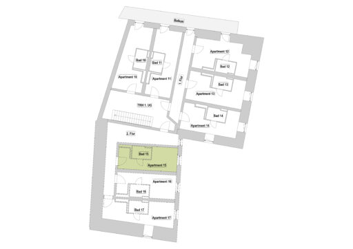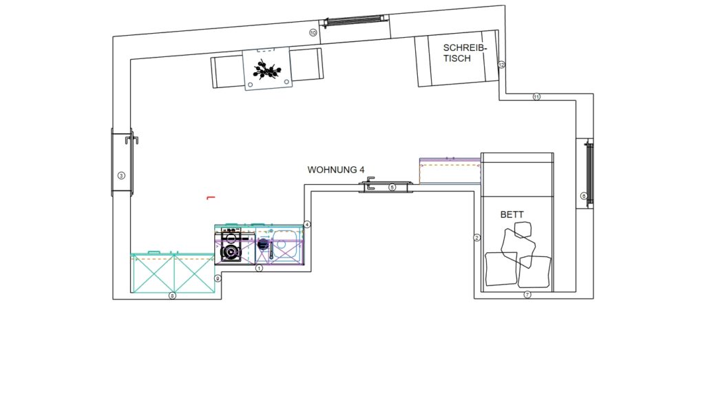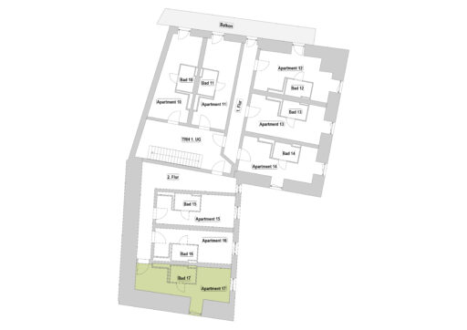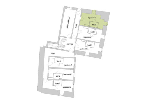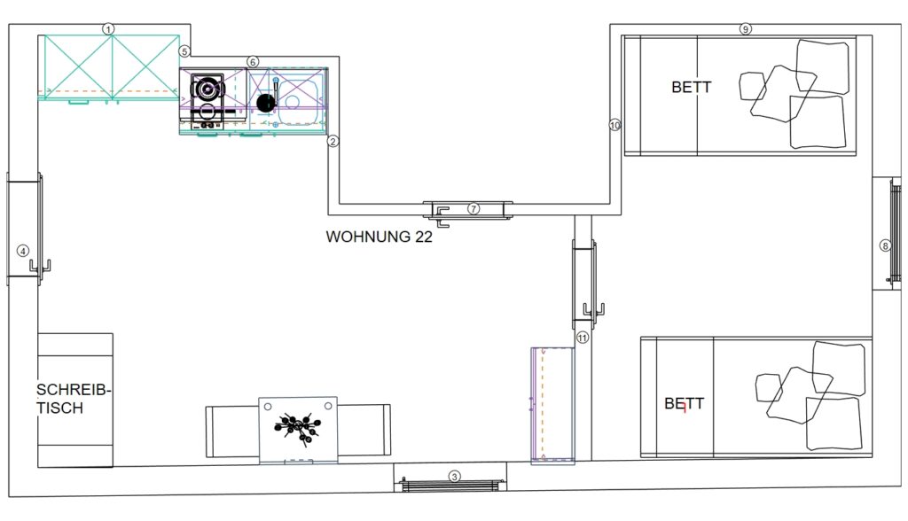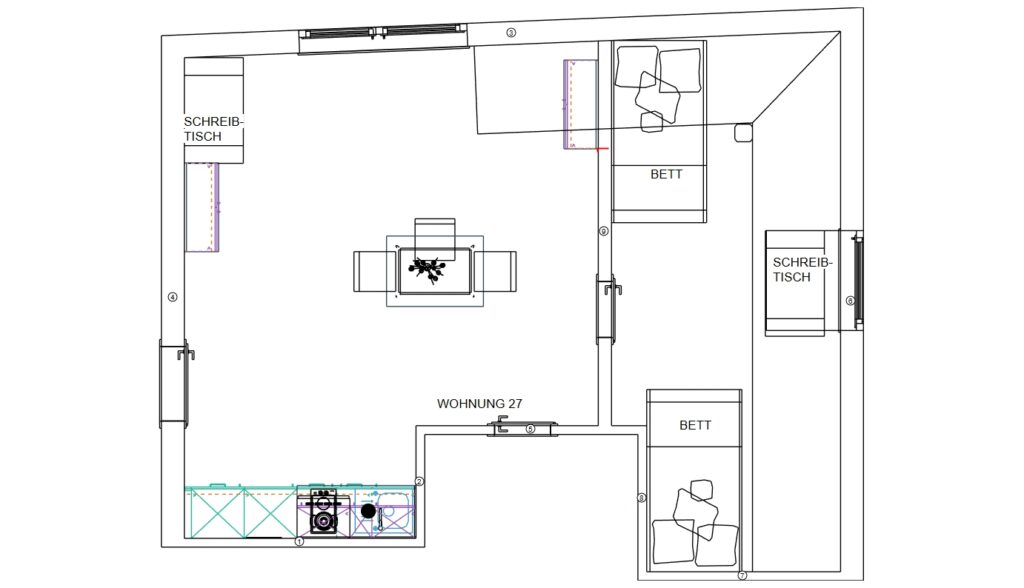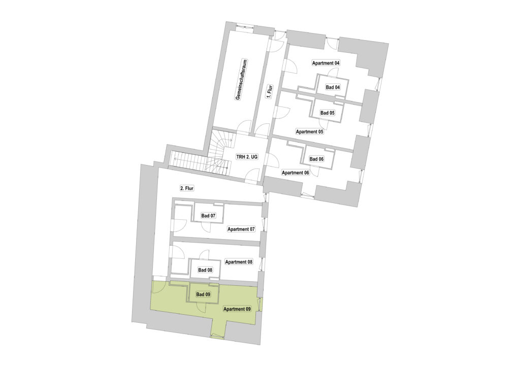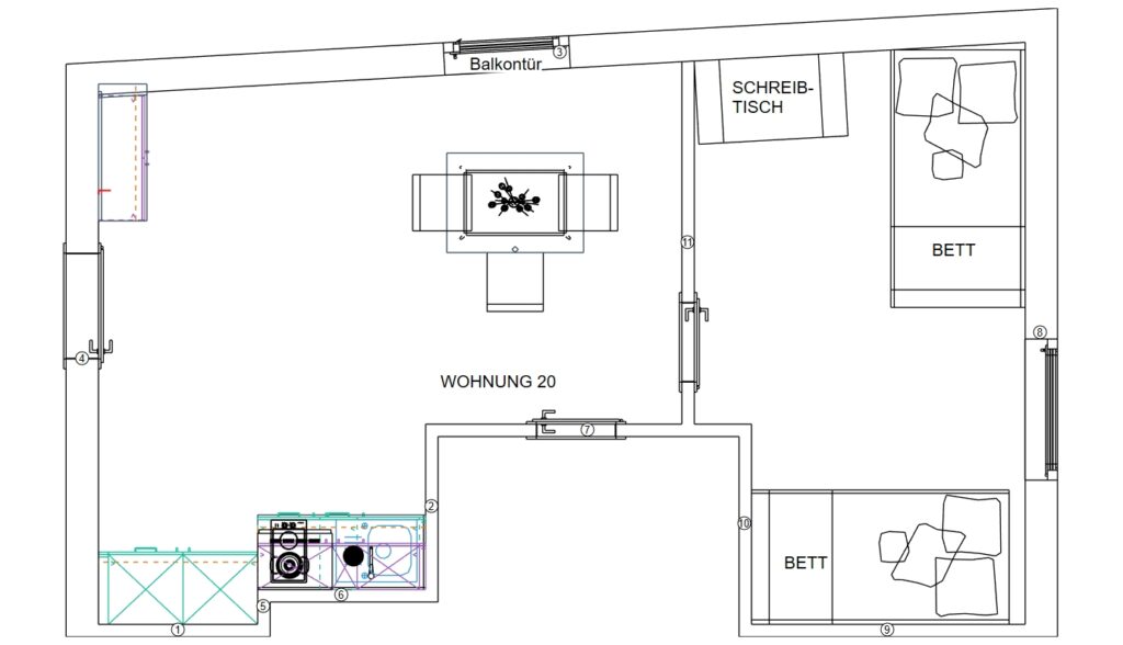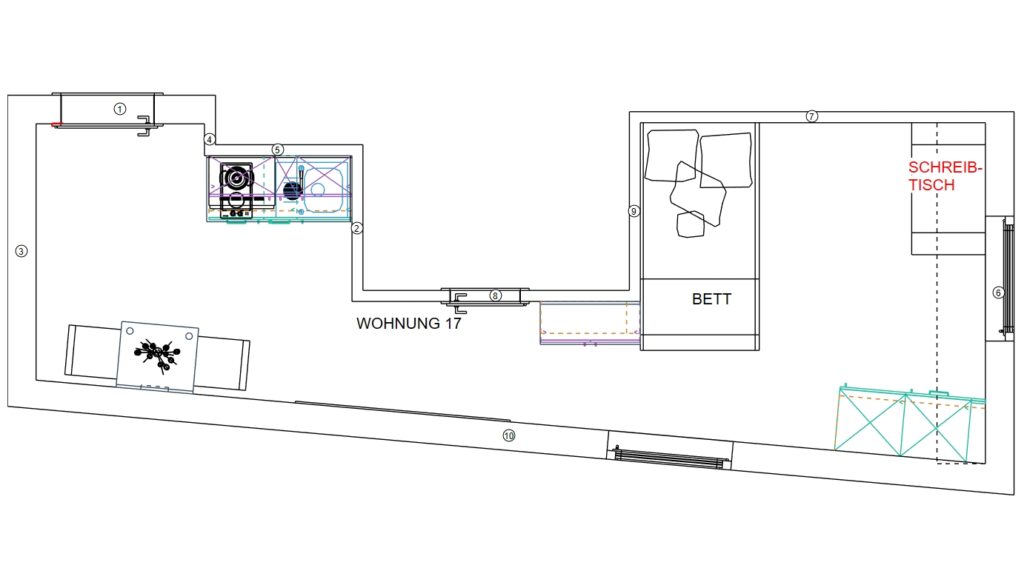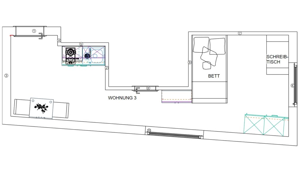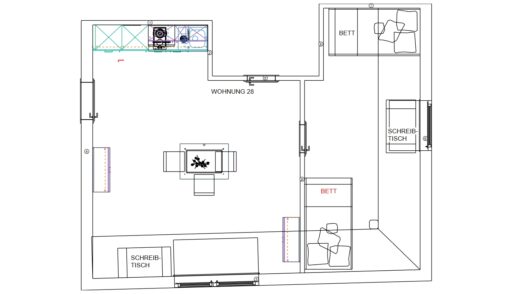 Das Erdgeschoss erreicht man direkt von der Straße „Auf der Schanze“ – der Haupteingang ist aber im Innenhof im 3. Untergeschoss. Wenn du mal raus aus deinem Apartment willst, wartet im Haus ein gemütlicher Gemeinschaftsraum auf dich. Hier kannst du Leute kennenlernen, gemeinsam lernen oder einfach den Feierabend drinnen oder im angrenzenden Garten genießen.