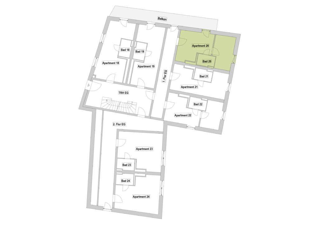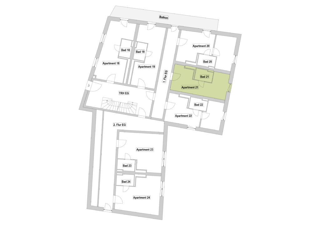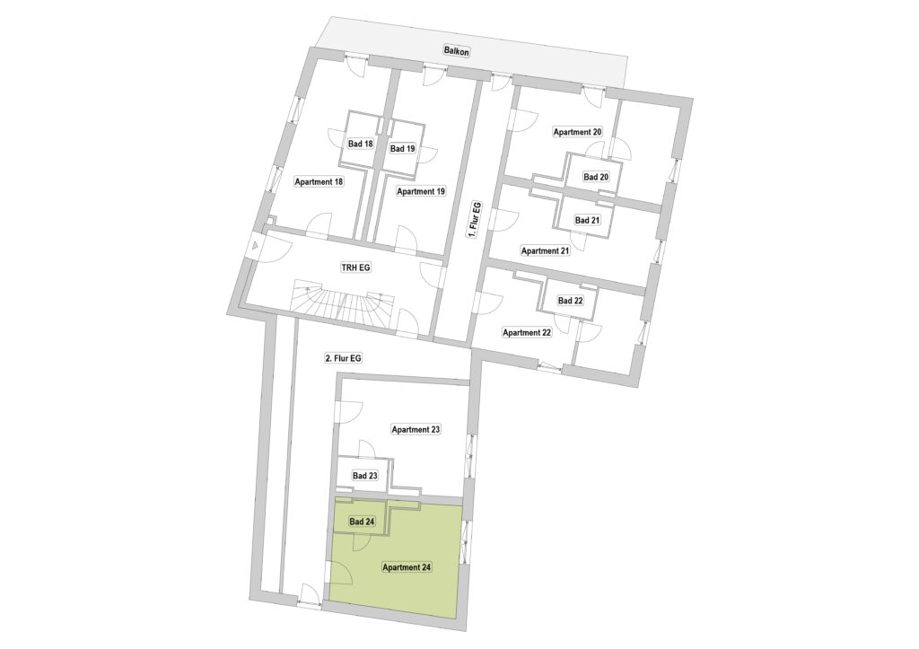 Einige Apartments bieten sogar einen direkten Zugang zum Balkon, bei anderen erreichst du diesen über den Flur.